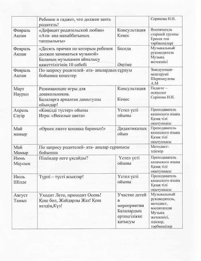 Кеңес беру пункт жұмысының 2025-2026 оқу жылына жоспары