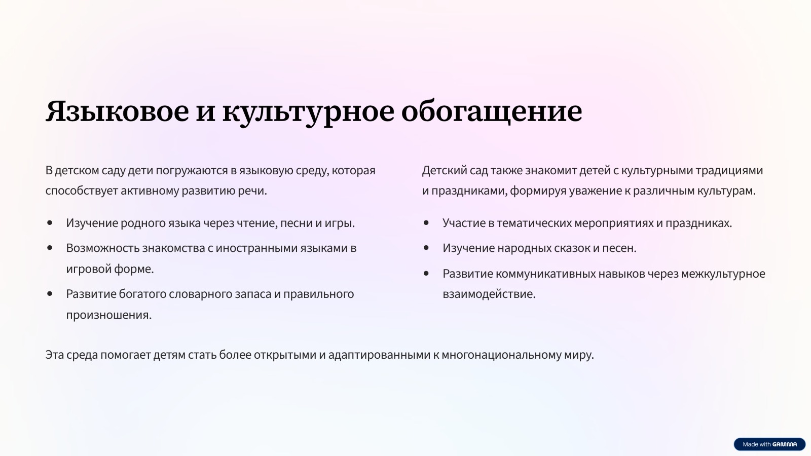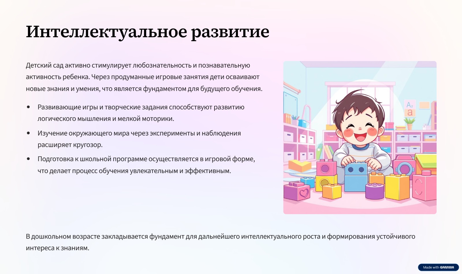 Всестороннее развитие правильной речи дошкольника