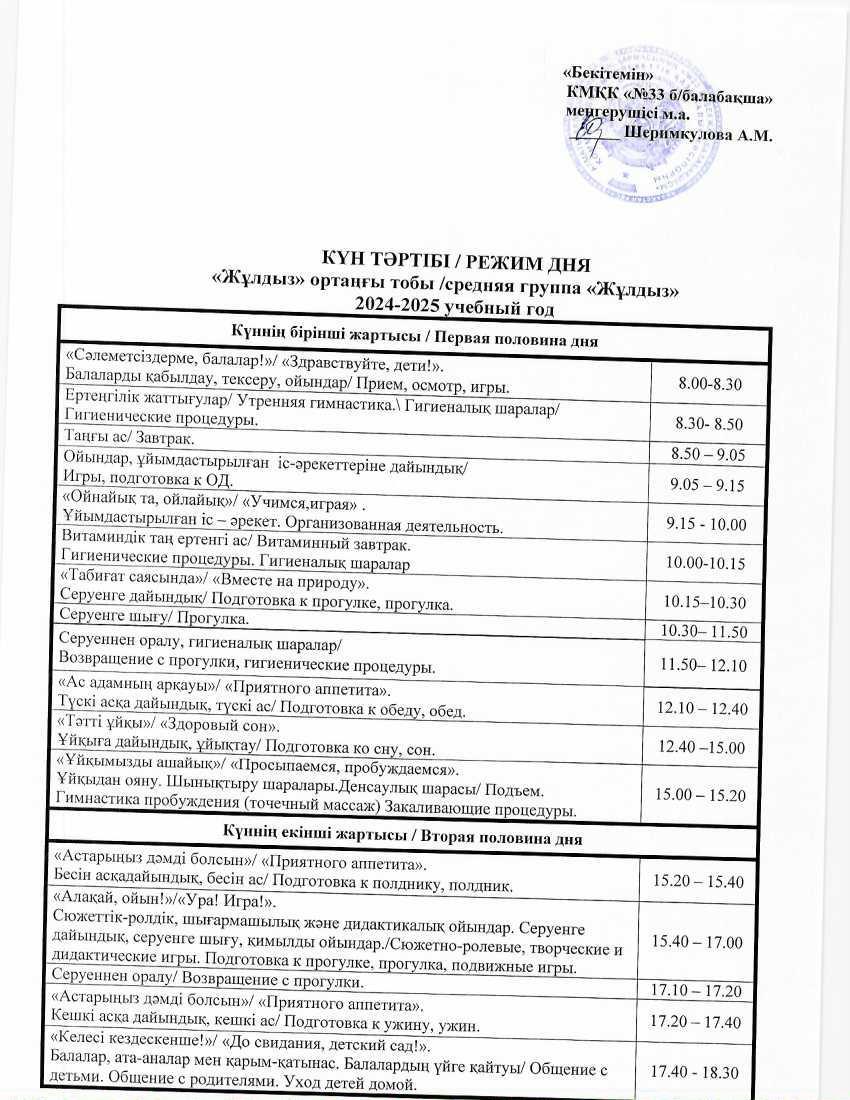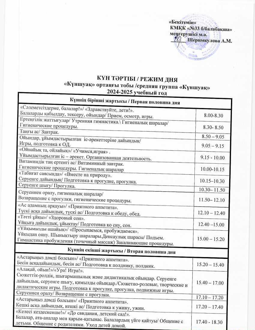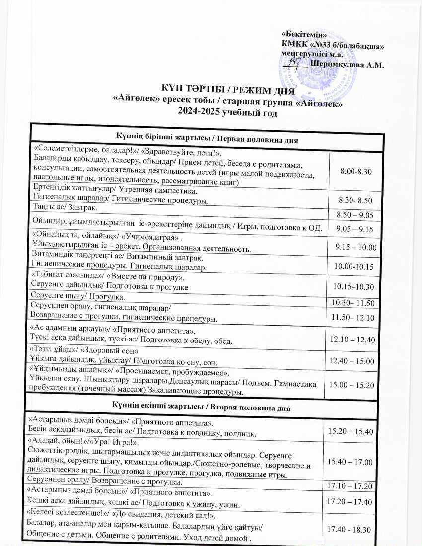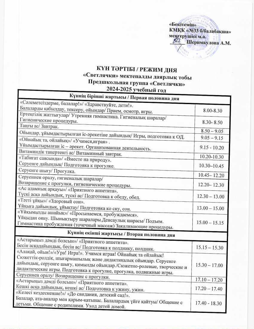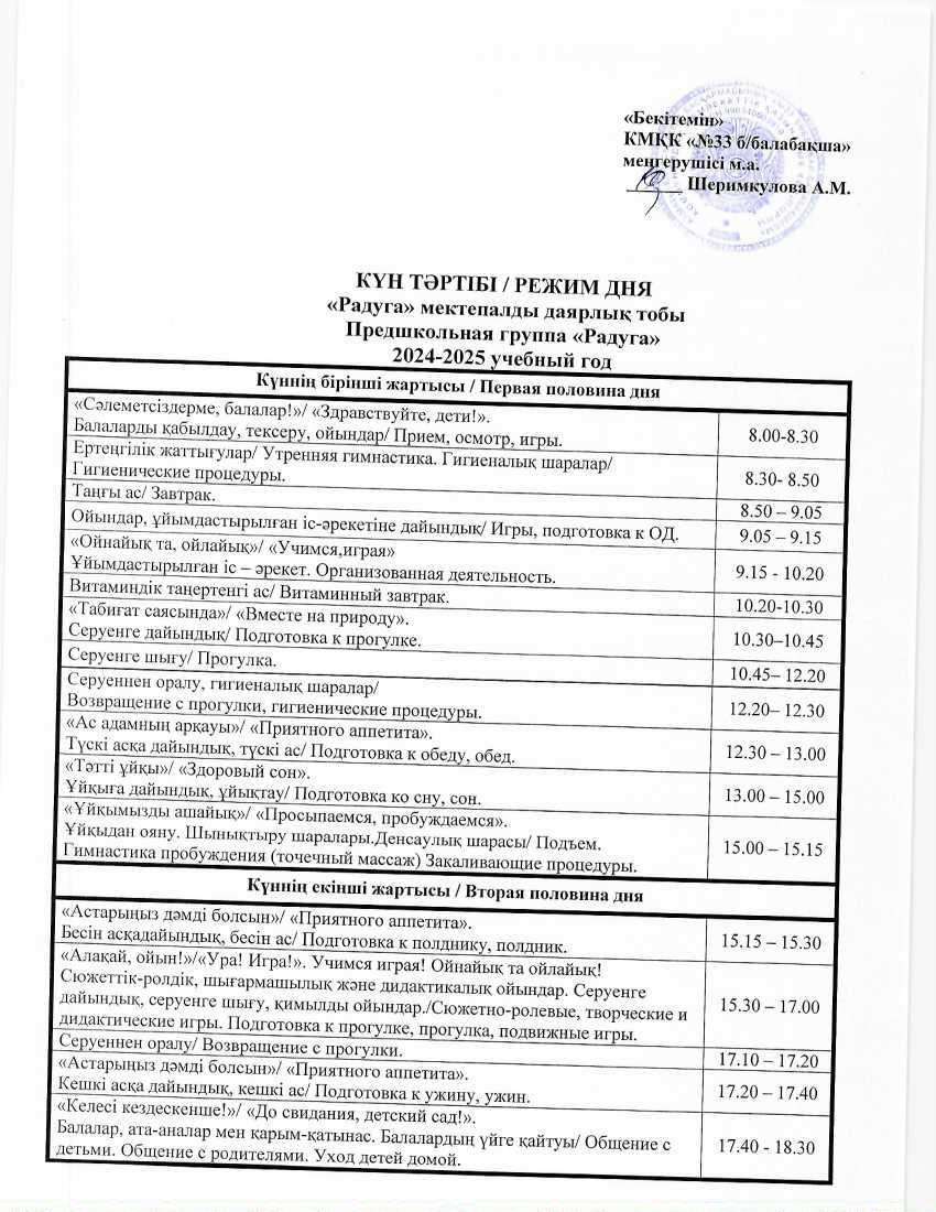 » Күн тәртібі 2024-2025 оқу жылы. Режим дня 2024-2025 учебный год